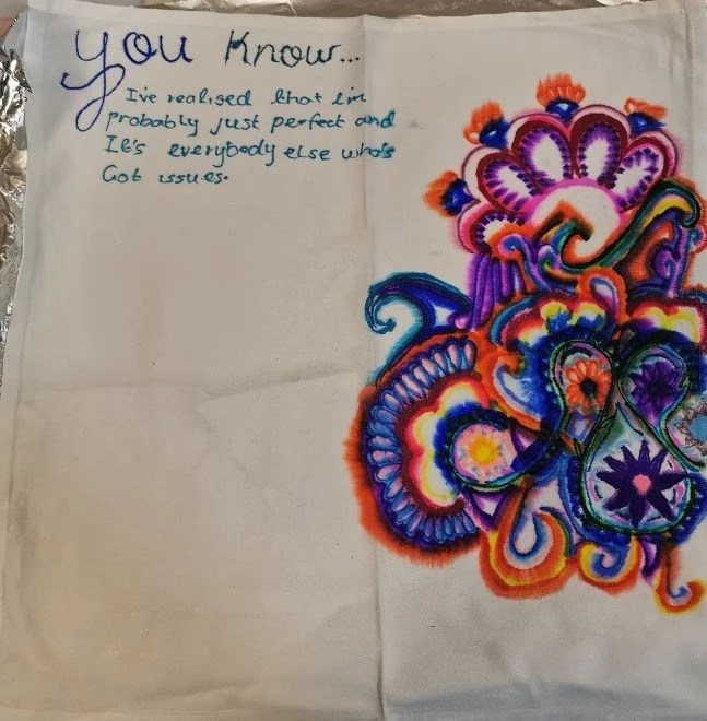 Art allows them a medium to explore topics each week in a creative way and they are expertly guided through how they think and act in these areas. Many of their art work to start with is so black, representing the depth of their pain and lack of hope. After weeks of black art work a touch of colour starts to appear and it gets bigger the next week….How exciting are those moments, that spark of hope appears and grows.
