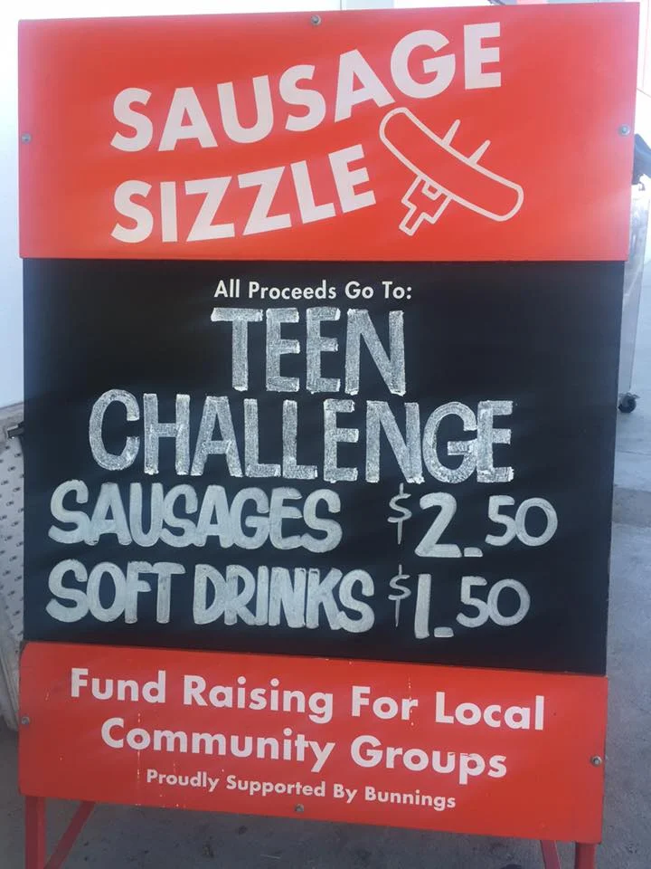 Come grab a snag or two and support a great cause raising funds for Teen Challenge Tasmania's Connections Mentoring Program, #NotEvenOnce Drug Demand Reduction Projects in Tassie High Schools, Sporting and Community groups and Home of Hope, Women and Children's Drug and Alcohol Rehabilitation Centre.